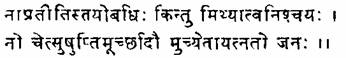 «Тот, кто, погрузив ум в Брахмана, тем не менее полностью бодрствует, будучи свободным от особенностей бодрственного состояния, и чье осуществление свободно от любого желания, должен рассматриваться как человек, освобожденный еще при жизни».