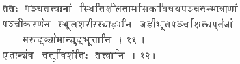Эти пять форм грубой материи и перечисленные ранее пятнадцать атрибутов вместе с Манасом (Индивидуальным разумом, чувствующим сознанием), Буддхи (Различающим Интеллектом), Читтой (Сердцем или силой чувствования) и Аханкарой (Эго) образуют двадцать четыре основных начала творения.