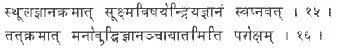 Этот союз пятнадцати атрибутов электричеств осуществляется индивидуальным разумом (Манасом), а окончательные трактовка и понимание воспринятого выполняются космическим интеллектом (Буддхи). Отсюда видно, что все представления человека в бодрствующем состоянии, — это, действительно, всего лишь Парокшагйяна, то есть некое резюме нашего знания о мире.