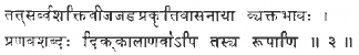 Идея изменения, существующая в Вечно Неизменном, есть Время (Кала). Идея разделения, существующая в Вечно Неделимом, есть Пространство (Деша). Следствие, вытекающее из них есть идея Частиц, бесчисленных атомов (на санскрите: Патра или Ану).