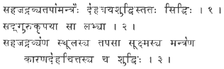 Через природу очищается плотная материя (физическое тело); наложением епитимьи достигается очищение тонкой материи (тонкоматериального тела); с помощью мантр очищается разум.